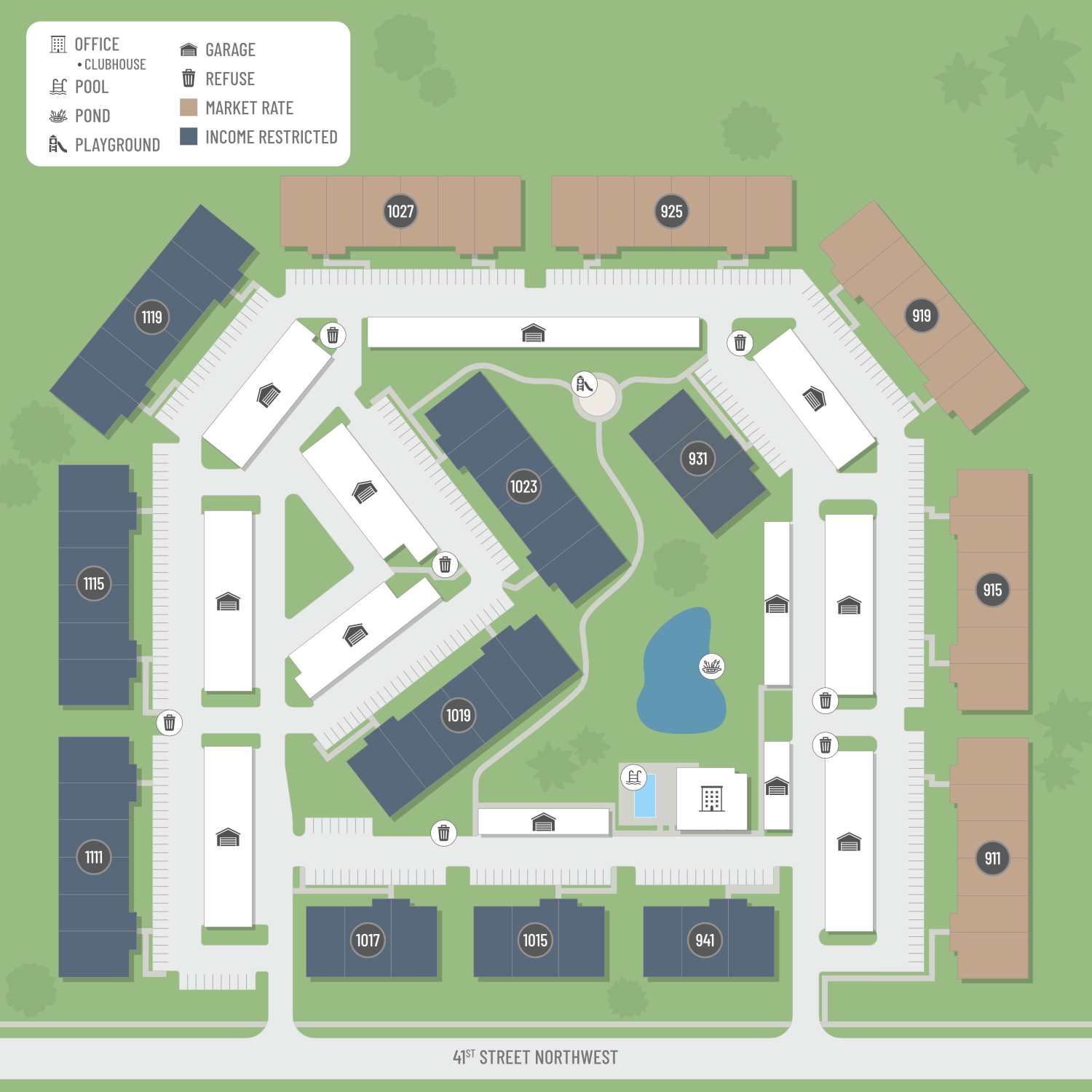 Select a floor plan or bedroom count to view those units on the overhead view on the site map. If you need assistance finding a unit in a specific location please call us at 507-218-2071 TTY: 711.